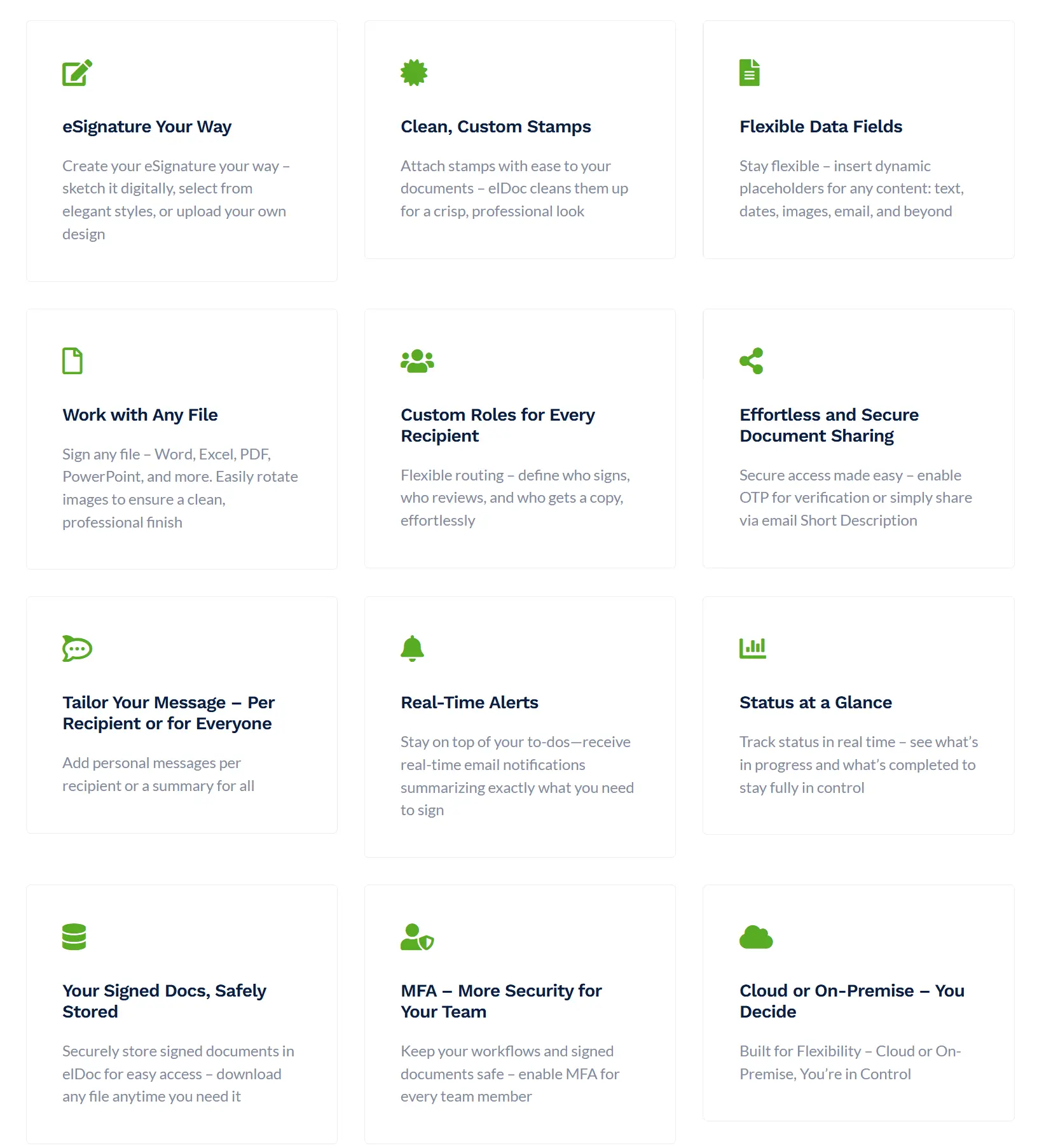 In essence, elDoc eSignature is not just a tool for signing documents -it is a flexible, secure, and scalable platform that enables enterprises to manage, control, and accelerate their entire document lifecycle with confidence.