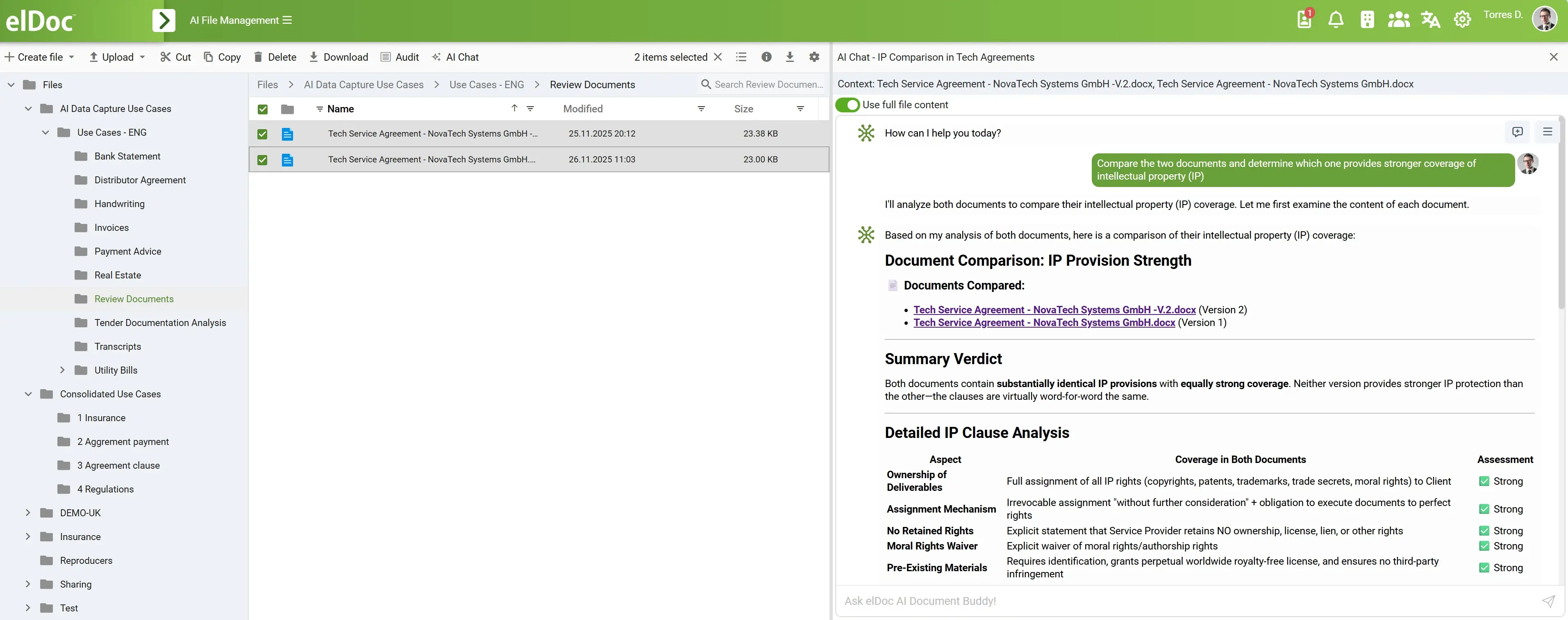 At the core of this approach is Role-Based Access Control (RBAC), which defines what data each user can see and interact with. The AI agents in elDoc inherit these permissions and operate strictly within them. They cannot retrieve, analyze, or generate outputs based on information the user is not authorized to access.