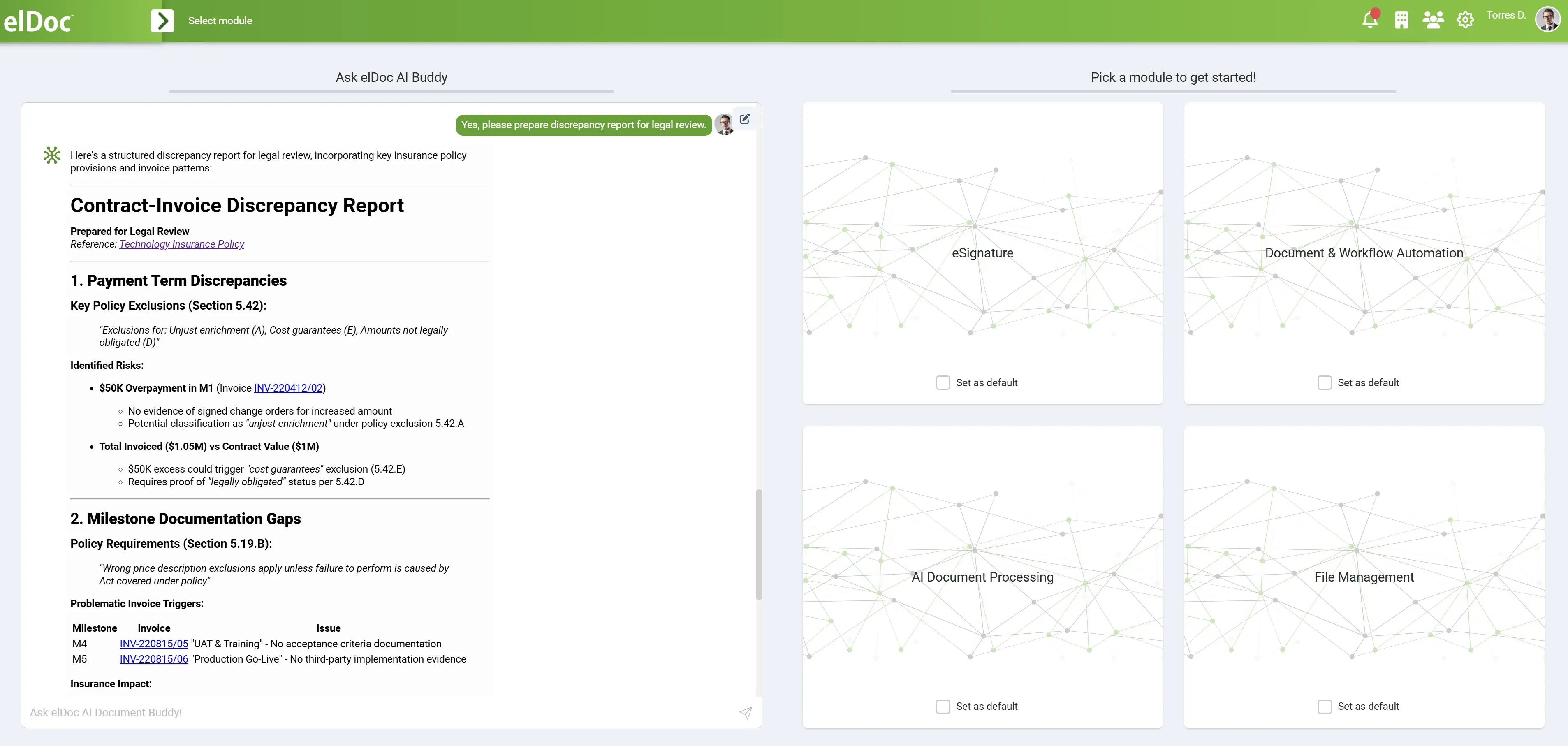 - Identify risks, inconsistencies, and hidden patterns across large document sets, supporting compliance and governance efforts